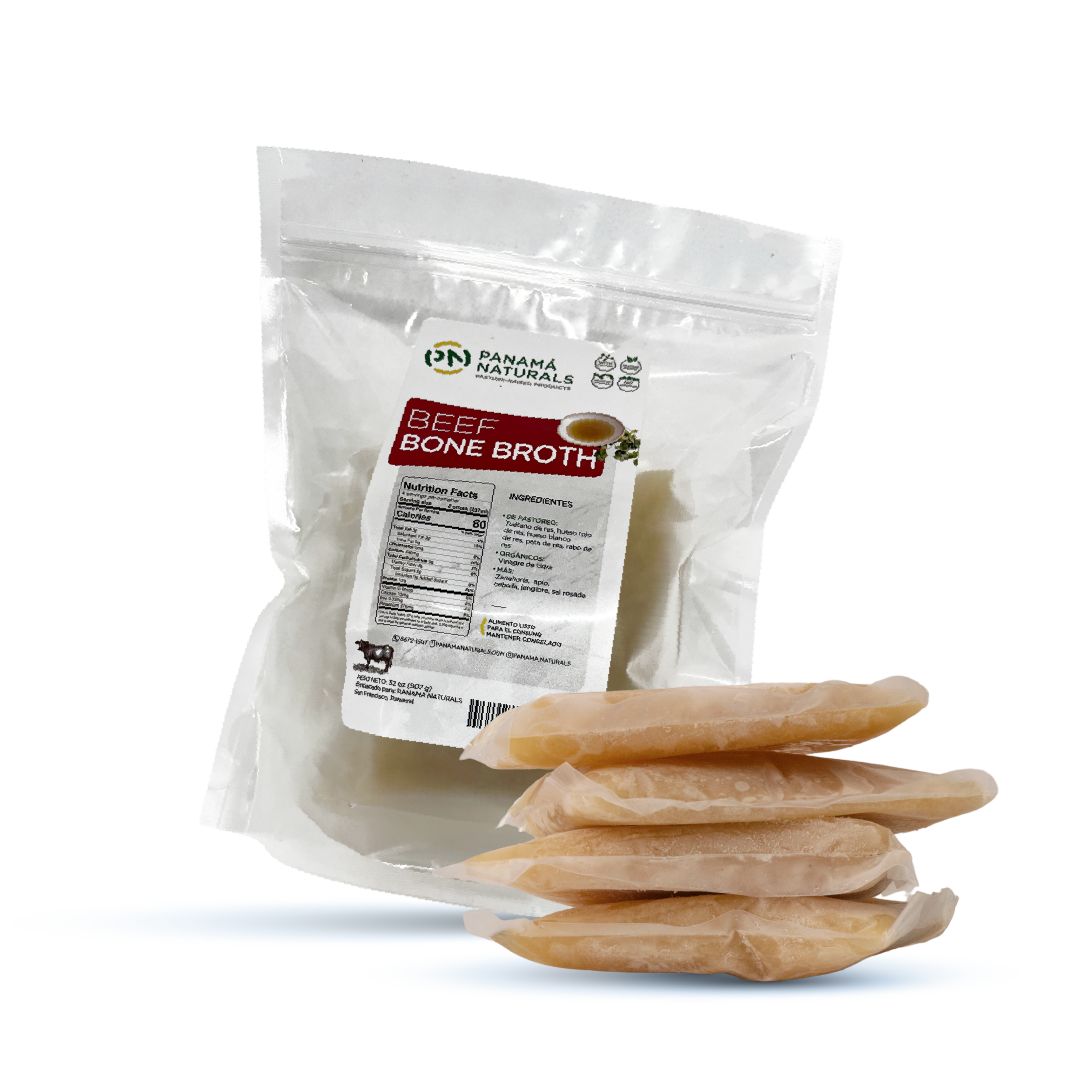 Ingredientes: agua, huesos y costillas de res*, cebolla, apio, zanahoria, jengibre, vinagre de cidraº, sal rosada